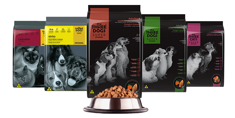 A linha Three Original (Premium Especial) conta com alimentos livres de corantes e aromatizantes artificiais e apresentam um excelente custo-benefício.