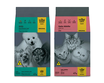 Todos os produtos Three foram desenvolvidos respeitando o equilíbrio nutricional e o bem-estar dos pets. Por isso, são livres de corantes e aromatizantes artificiais e a sua formulação é rica em ingredientes de alta qualidade, o que proporciona mais palatabilidade e digestibilidade, melhorando a qualidade de vida dos cães e gatos.